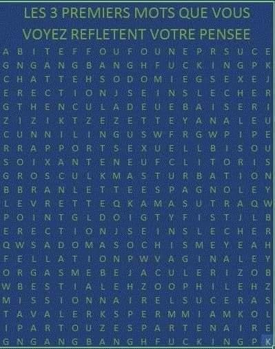 @anne-tv, j'ai vu le tableau que vous avez partagé, mais je n'ai pas été original dans ma façon de le regarder, car j'ai vu les trois mots de la ligne du haut, à savoir " bite, foufoune, suce".