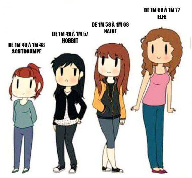 Désolé de te décevoir Jules. C'est vrai qu'on s'imagine des choses, et puis, le réel est souvent bien différent. Effectivement, des tailles homogènes. Après, quand on verra quelqu'un choisir Mimi Mathy comme pseudo, inutile de lui demander sa taille.
