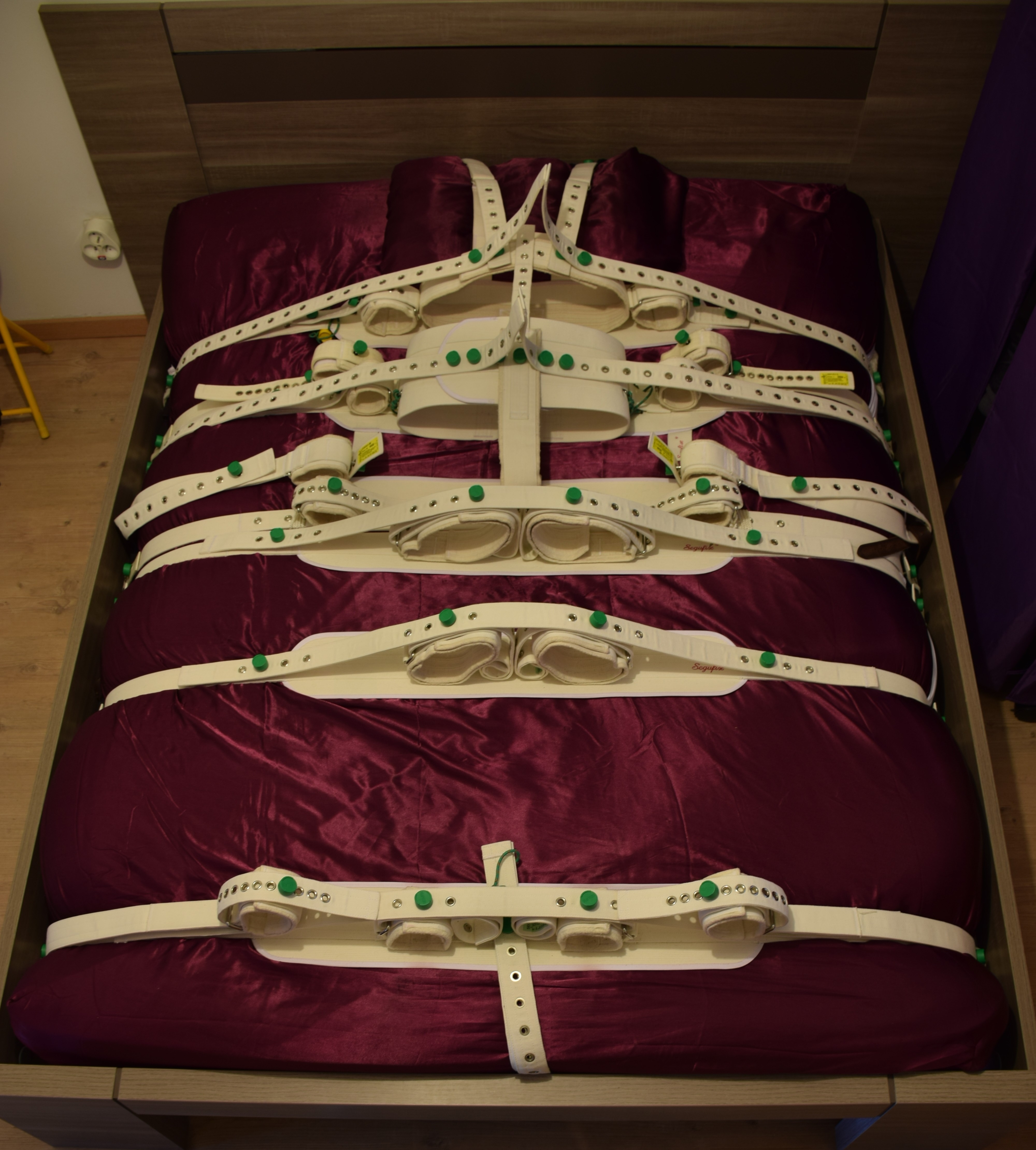 Pour m'empêcher de me toucher ou me punir, mon Maître utilise des sangles type SEGUFIX normalement utilisées dans les hôpitaux psychiatriques pour le patients turbulents et dangereux...