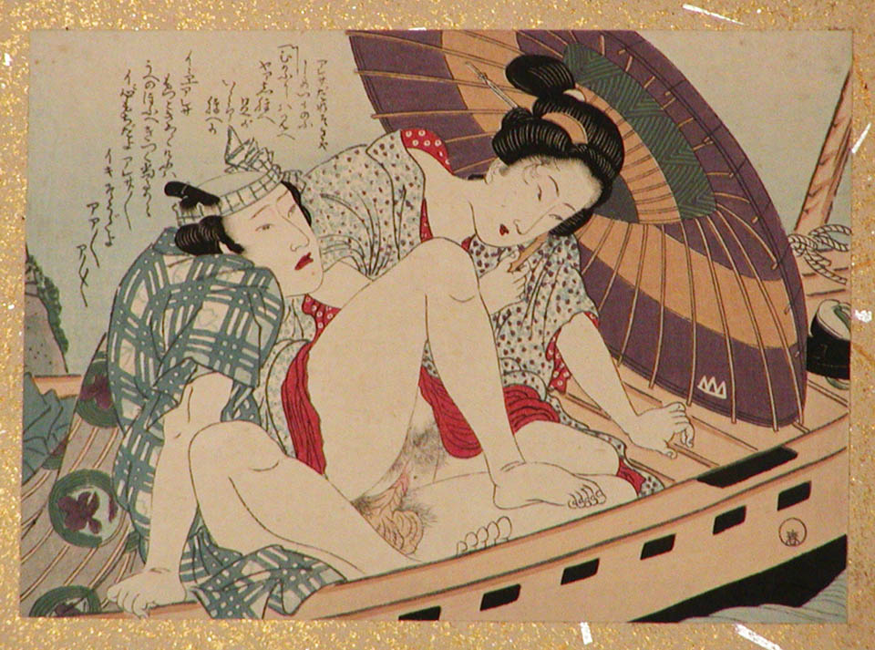 Il s'agit en fait d'estampe réalisées entre le 17ème et le 19ème siècle qui est un art dédié à l'amour, la jouissance ! On y retrouve des représentations très crues, avec une anatomie parfois détaillée et mise en avant ! Il y a également des scènes homosexuelles !