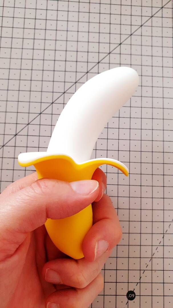 Elle a voulu se le mettre dans le cul "parce qu'il est trop mignon"...mais faut pas l'utiliser comme plug, il glisse autant qu'une vraie banane 😀 Ceci dit, il fait son petit effet là où il est inséré.